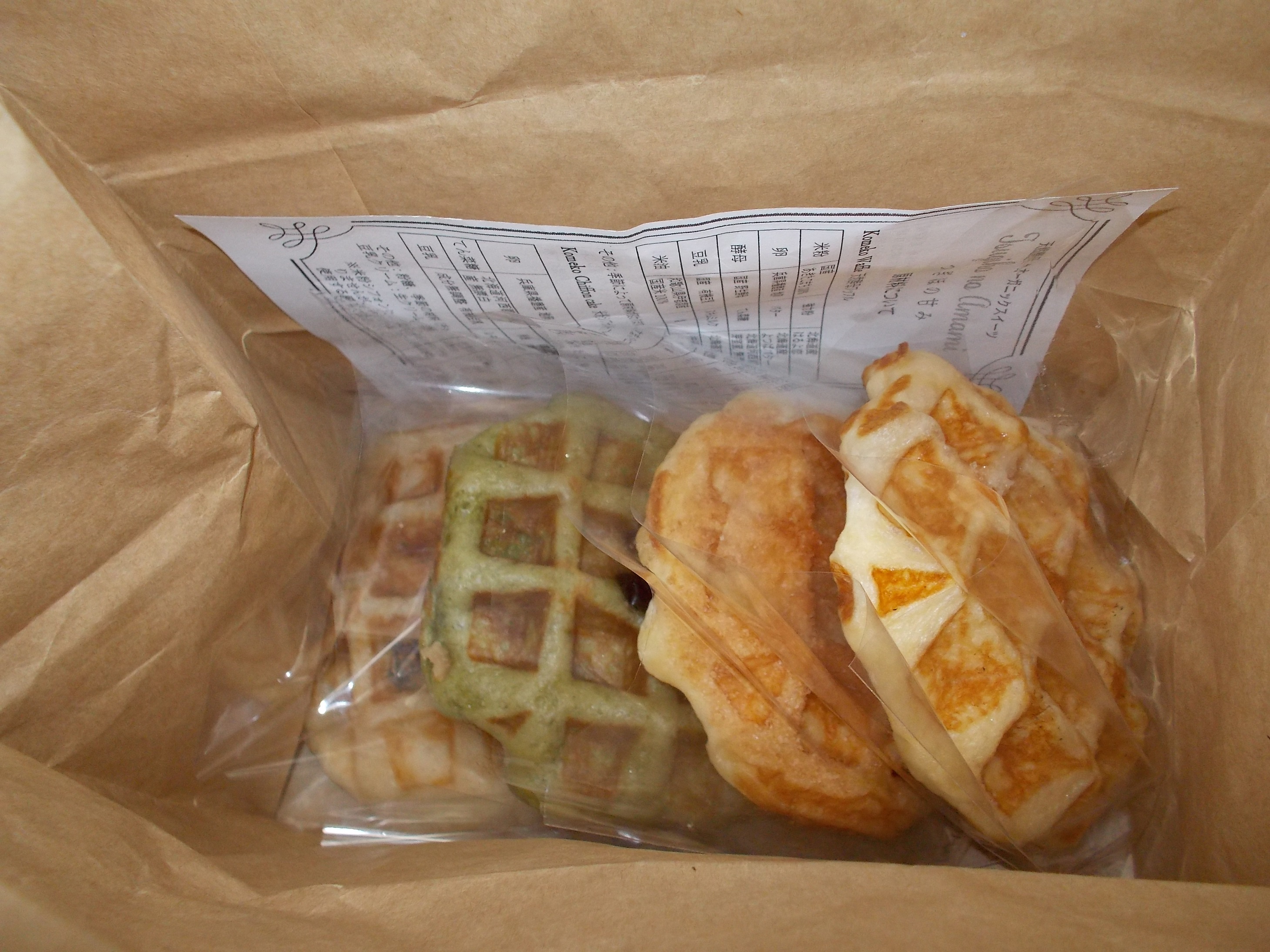 全てオーガニックの、珈琲や紅茶、そしてケーキにワッフルなどの洋菓子類、ジェラートが売っています。